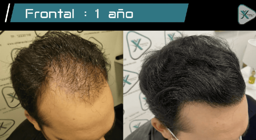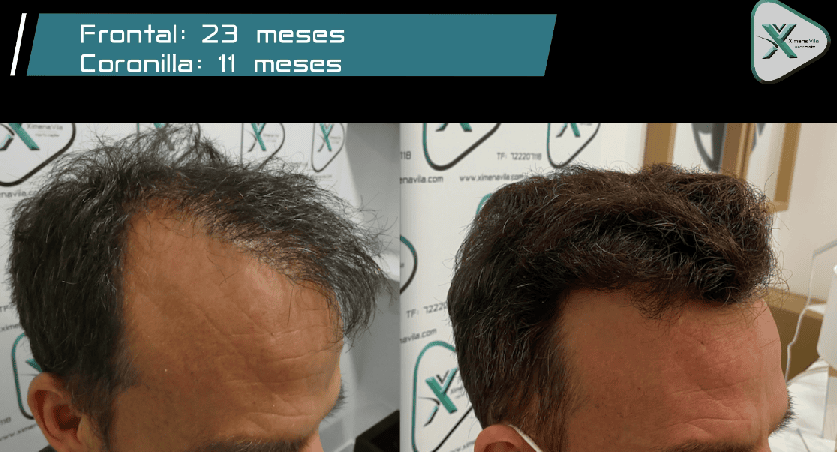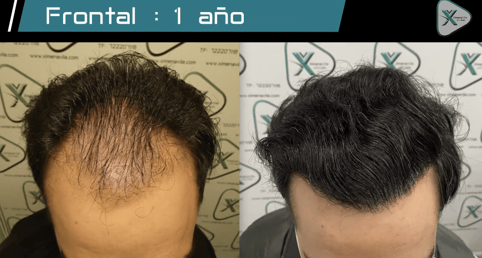 Antes y después tras un trasplante capilar con técnica FUE en la clínica de la Dra. Ximena Vila